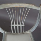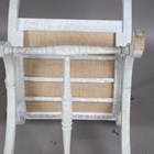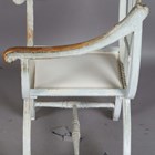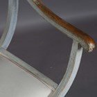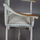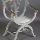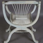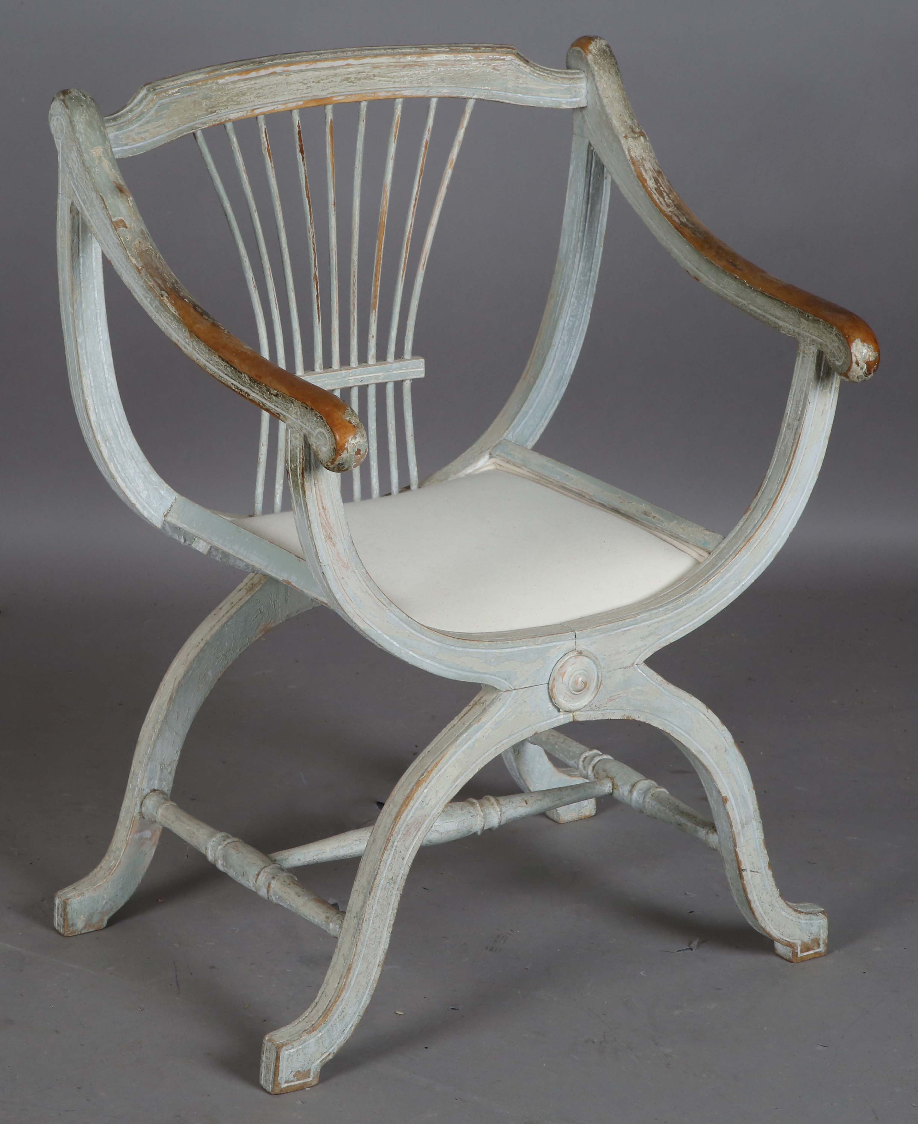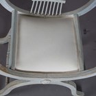 A late 19th/early 20th century French grey painted beech framed dressing table chair of 'X' framed form, height 77cm, width 54cm, depth 46cm.