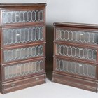 Two early 20th century oak Globe Wernicke library bookcases, both with leaded glass doors, width 86.5cm, depth 27cm.