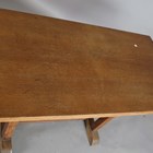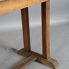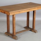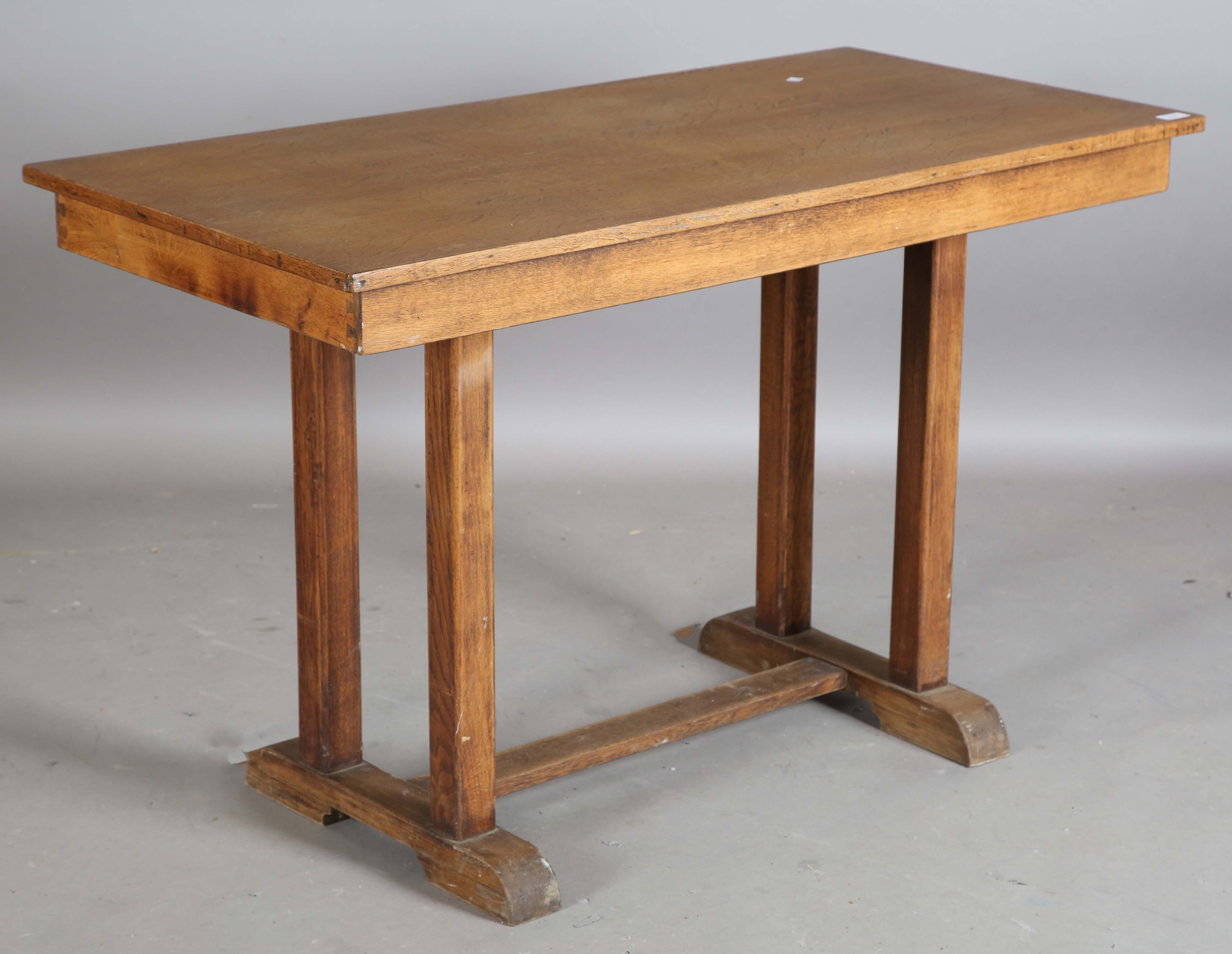 A mid-20th century Arts and Crafts style oak rectangular breakfast table, on chamfered legs and bracket feet, height 76cm, length 122cm, depth 61cm.