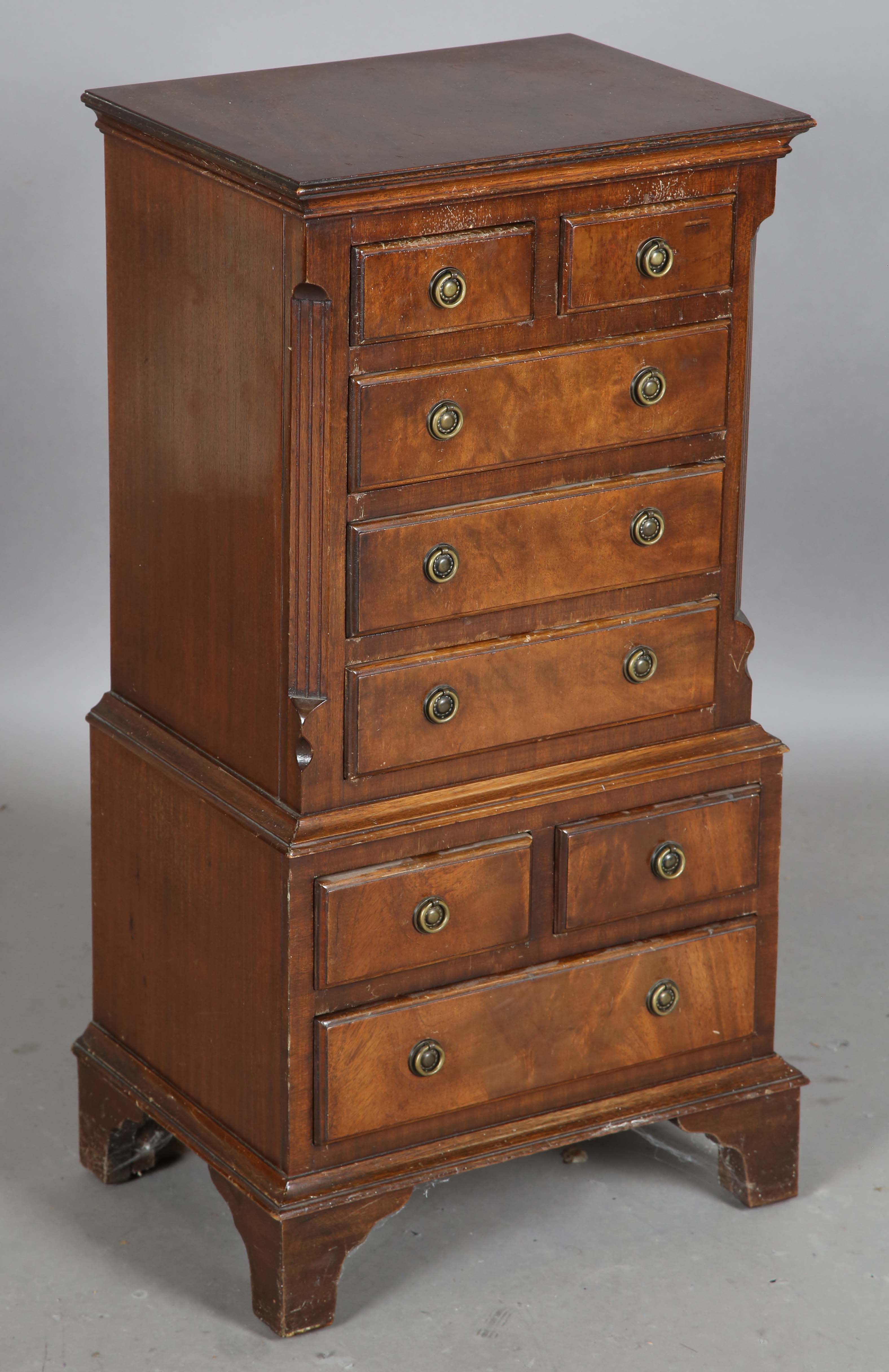 A late 20th century mahogany diminutive chest-on-chest, height 77cm, width 42cm, depth 30cm.