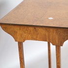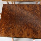 An early 20th century quartetto nest of burr walnut occasional tables with brass-edged tops and bracket feet, height 73cm, width 55cm, depth 36cm.