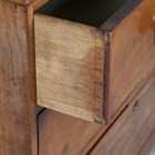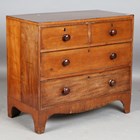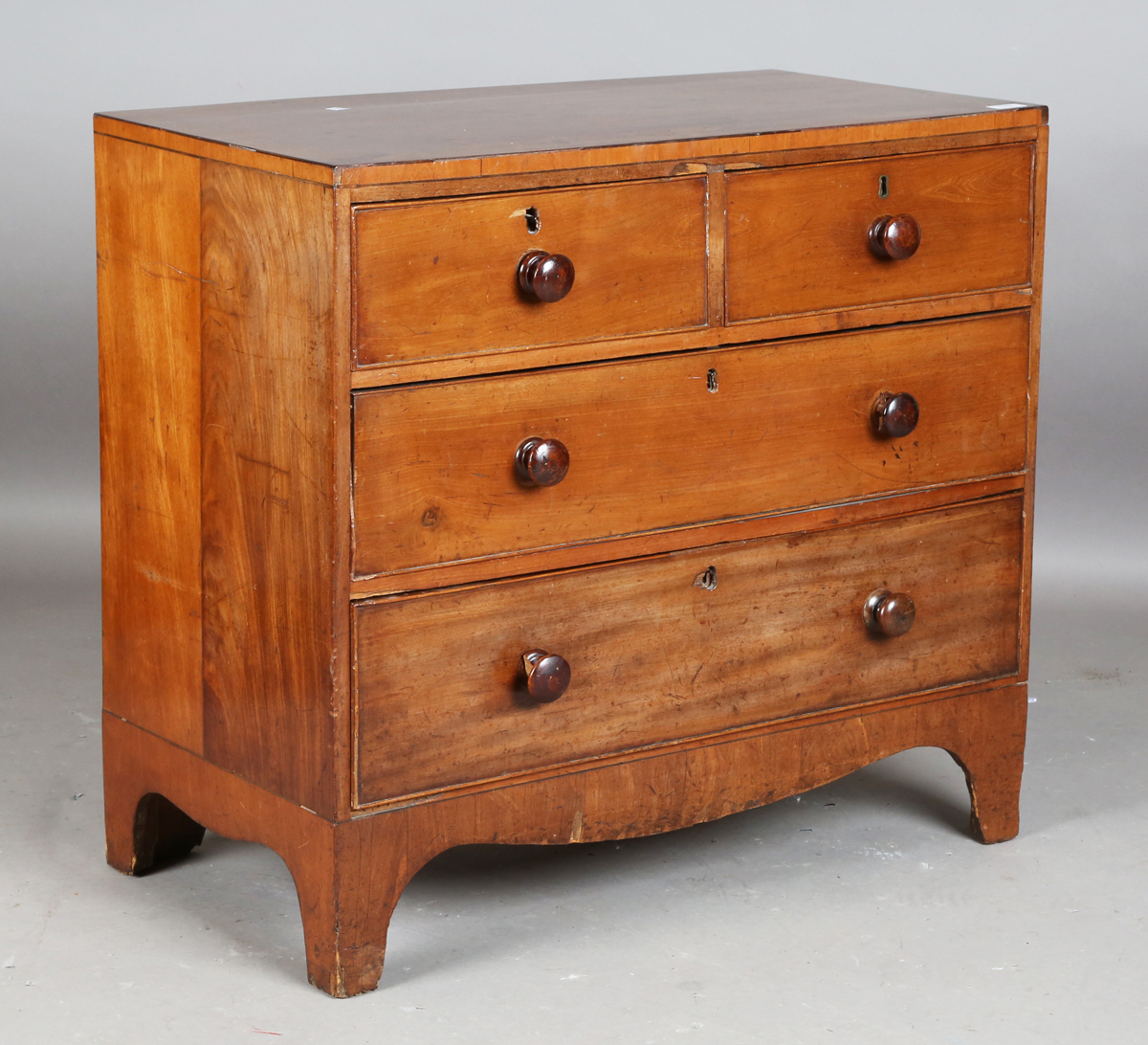 A small George III mahogany chest of oak-lined drawers, height 77cm, width 85cm, depth 45cm (faults).