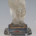 A Red Ashay satin glass car mascot, moulded in the form of a lady and lion, mounted to its illuminated base with radiator cap terminal, total height 23cm. Note: Red Ashay mascots were made for H.G. Ascher Ltd of Manchester and London, by the Reidel Glass Works in Czechoslovakia. H.G. Ascher first marketed these mascots as ‘Red Ashay’ in 1930 and they were finally taken off the market in 1952, when H.G. Ascher closed.