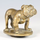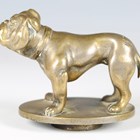 An early 20th century cast bronze car mascot in the form of a bulldog, probably by Desmo, mounted on an oval base, length 10cm.
