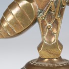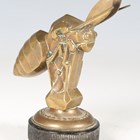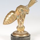 An early 20th century cast bronze car mascot in the form of a stylized hornet, raised on its original radiator cap fitting, height 12cm.