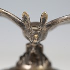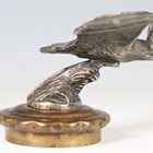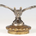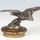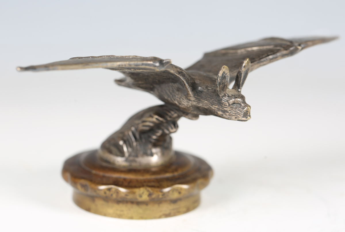 An early 20th century nickel plated cast bronze car mascot in the form of a flying bat by A. Reveney, bearing cast signature and raised on a radiator cap, height 9cm. Provenance: Phillips sale 23 June 1990, Lot 117.