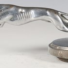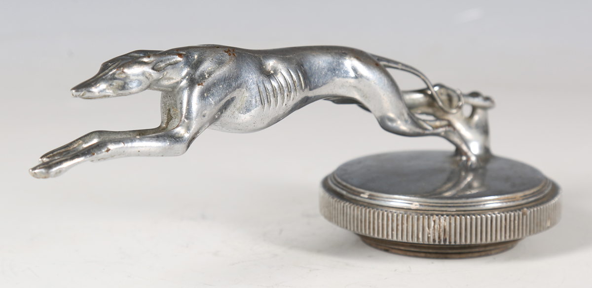 An early 20th century nickel plated Ford Lincoln Greyhound car mascot, mounted to a radiator cap, length 23cm.