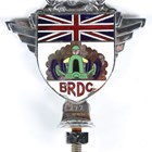 A BRDC enamelled car badge, detailed '277 Oscar Moore' to the front and 'Collins London', height 11.5cm (faults).