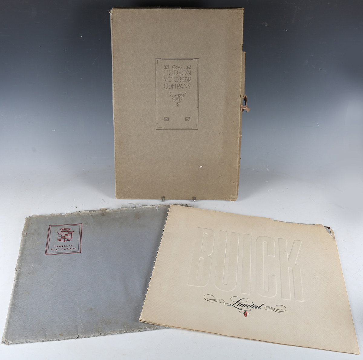 A 1930s Buick Limited promotional sales brochure, 42cm x 37cm, a similar Cadillac Fleetwood brochure and a Hudson Motor Car Company sales brochure.