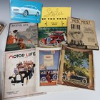 A collection of automobilia related ephemera, including a 1923 Renault sales brochure, other car sales brochures, various magazines and two 1930s driving licences.