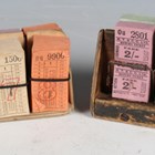 A collection of London Transport bus and Bristol Tramways tickets, all stapled within their original form and some contained within two holders.
