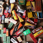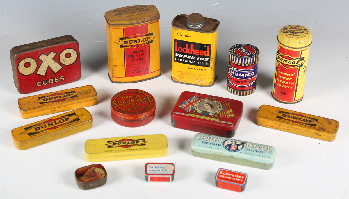 A collection of mainly mid-20th century automobile spares in their original packaging, including spark plugs and bulbs by various makers.