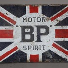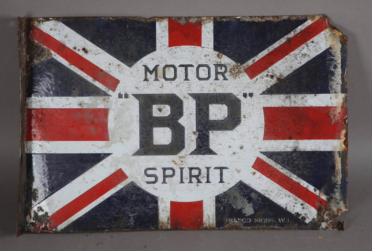 A BP 'Motor Spirit' double-sided enamel Union Jack design advertising sign, detailed 'Franco Signs', 40cm x 61cm.