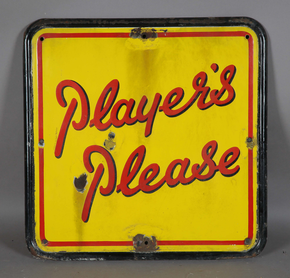 A 'Player's Please' enamel advertising sign with rounded edge, 59cm x 59cm.