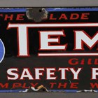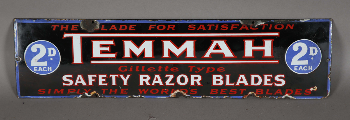 A scarce 'Temmah Gillette Type Safety Razor Blades' enamel advertising sign, 16cm x 61cm.
