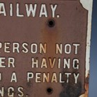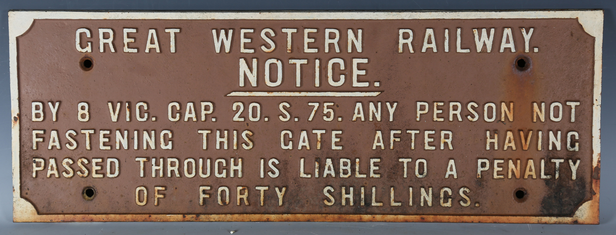 A Great Western Railway cast iron penalty notice sign, 27.5cm x 75cm.