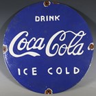 A reproduction Coca Cola enamel advertising sign, diameter 40.5cm.