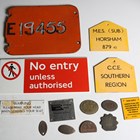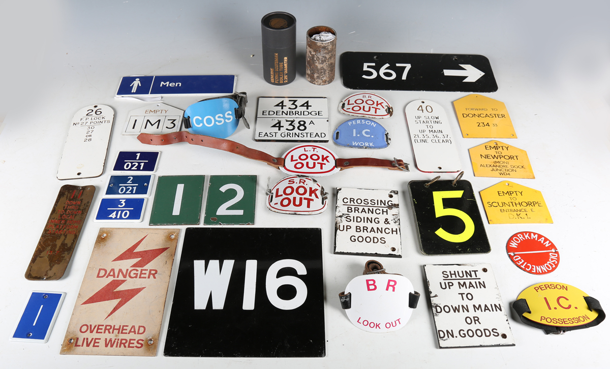 "A mixed group of railwayana, including a 'Genuine Flying Scotsman Boiler Tube 2.25"" Diameter', boxed, seven British Railways armbands and various signs."
