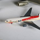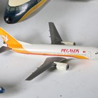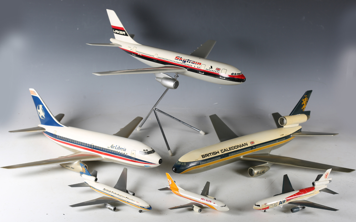 A mid-20th century travel agent's aeroplane display model of a Laker Skytrain, length 52cm, together with four similar model aeroplanes.