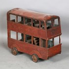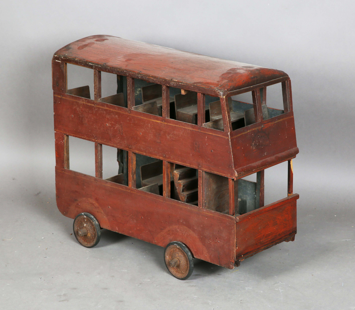 A mid-20th century scratch-built wooden model of a double-decker bus, inscribed 'L. N. E. R.' to sides, length 60cm.
