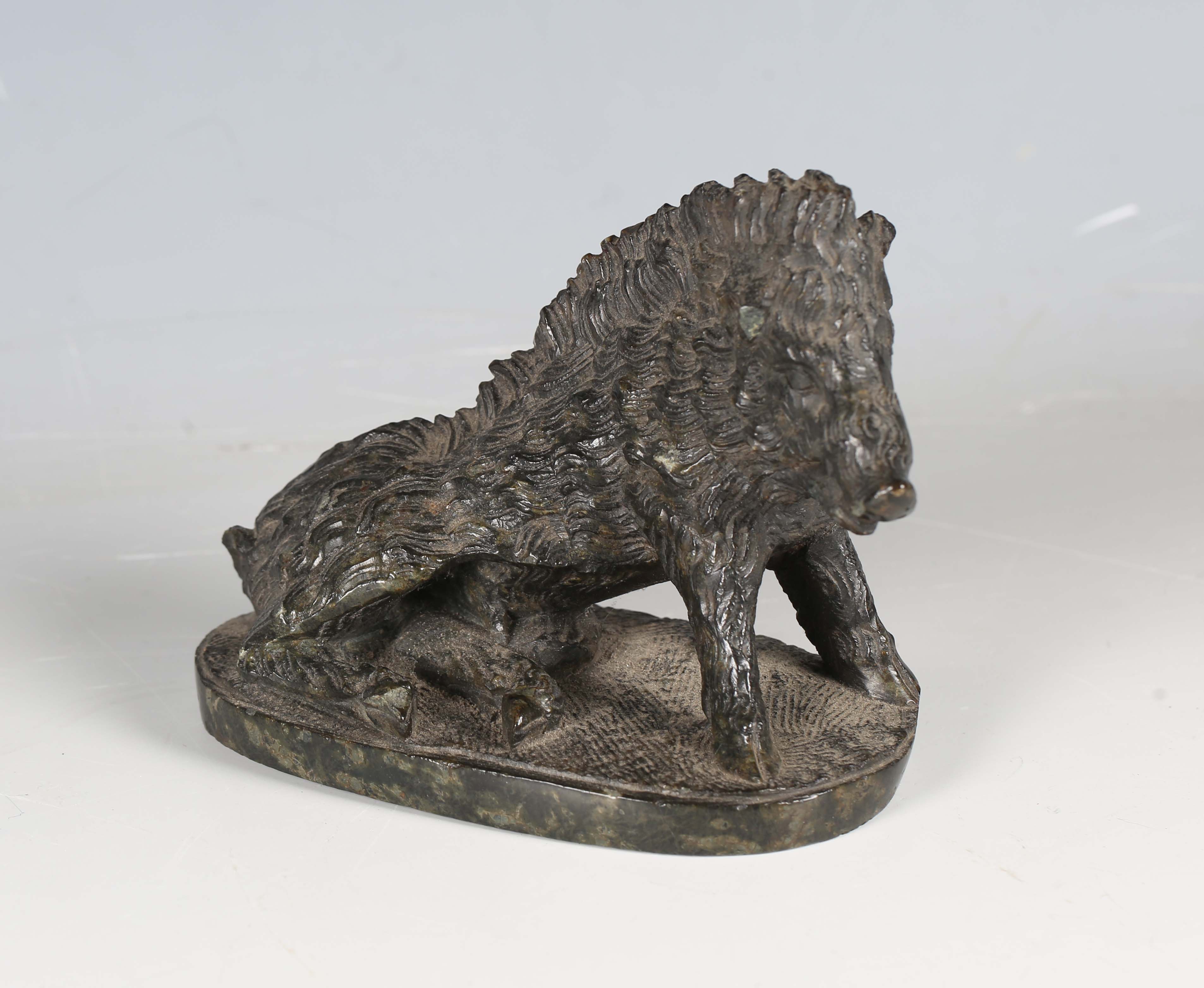 An early 20th century Florentine carved serpentine model of the Uffizi boar, width 13cm.