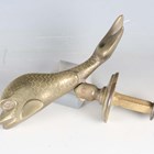 A 20th century cast brass doorknocker in the form of a stylized fish, length 23cm.