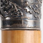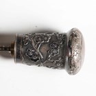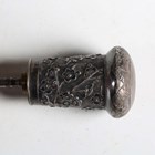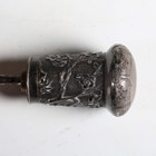 A late 19th/early 20th century Malacca walking cane, the Chinese silver pommel chased with blossoming prunus, maker's mark for Wang Hing, unscrewing to reveal a corkscrew, length 84cm.