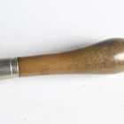 An early 20th century ebonized walking cane with a finely carved rhino horn handle and nickel collar, length 99.5cm. Note: as this lot incorporates rhinoceros horn, it would be very unlikely that a re-export certificate would be granted beyond the UK. Customers outside the UK are requested NOT to bid on this item.
