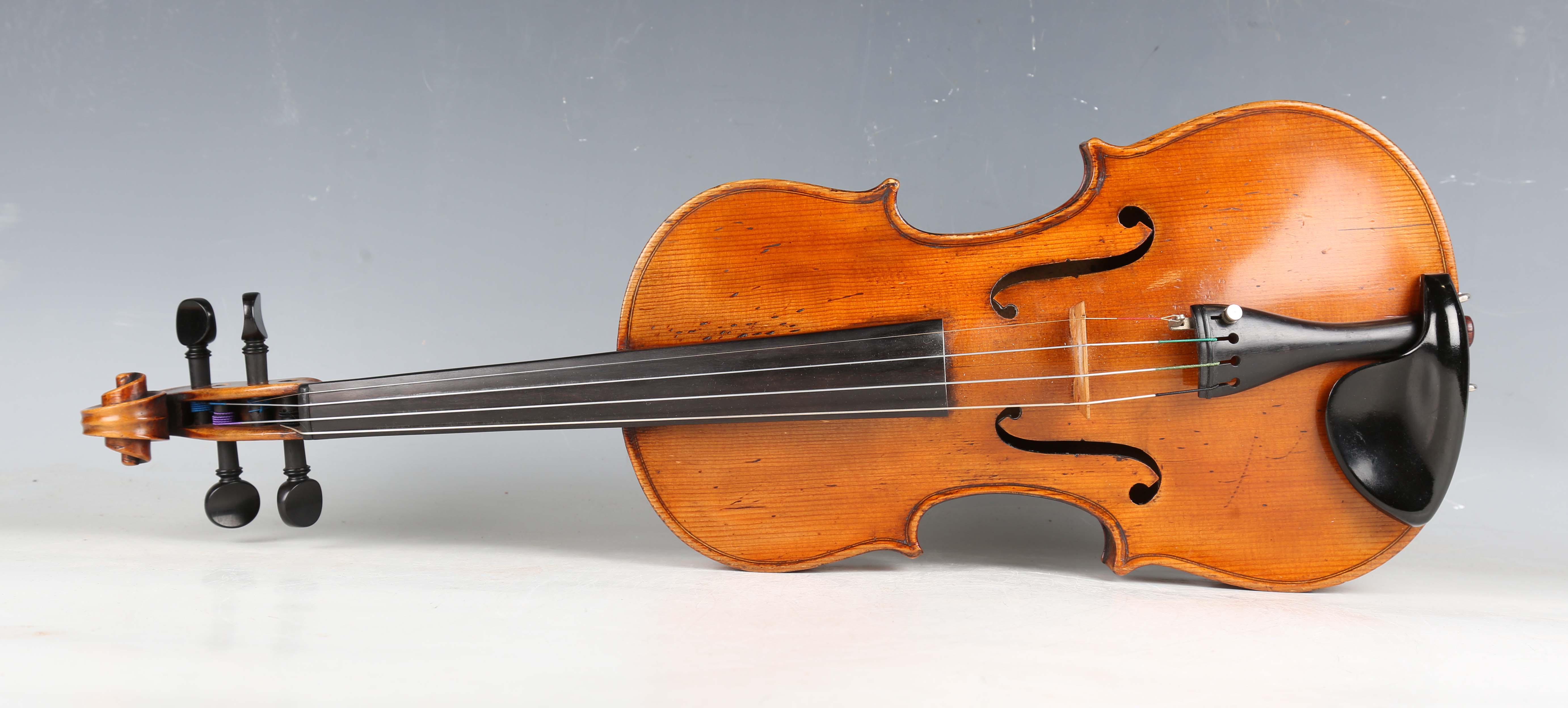A violin, the single-piece back stamped 'Duke London' below button, length of back excluding button 35.5cm, cased.
