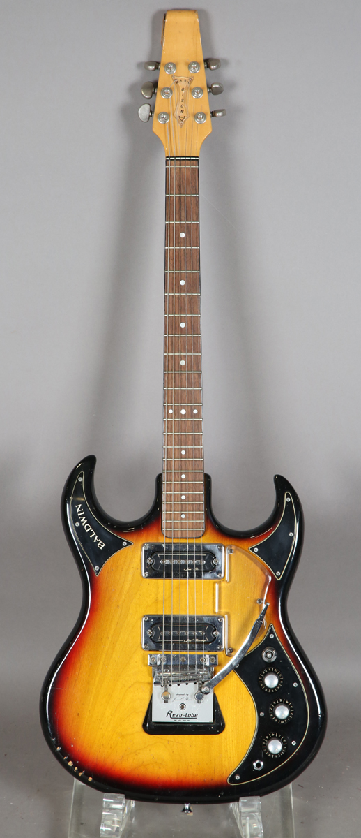 A Baldwin-Burns Baby Bison electric guitar with sunburst body, Serial No. 19185, cased.