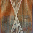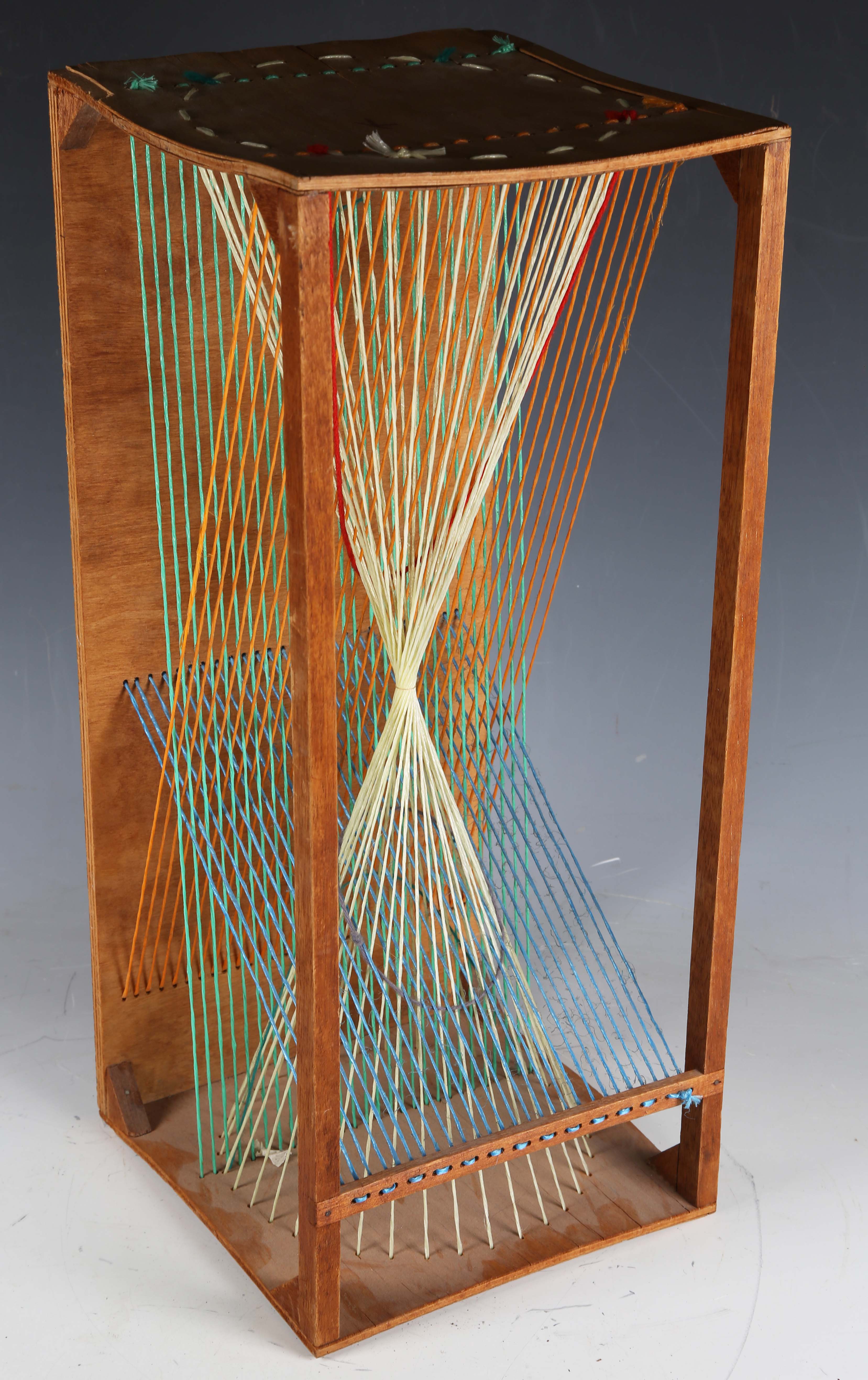 A mid-20th century stringwork sculpture, mounted within a wooden frame, height 47cm.