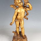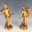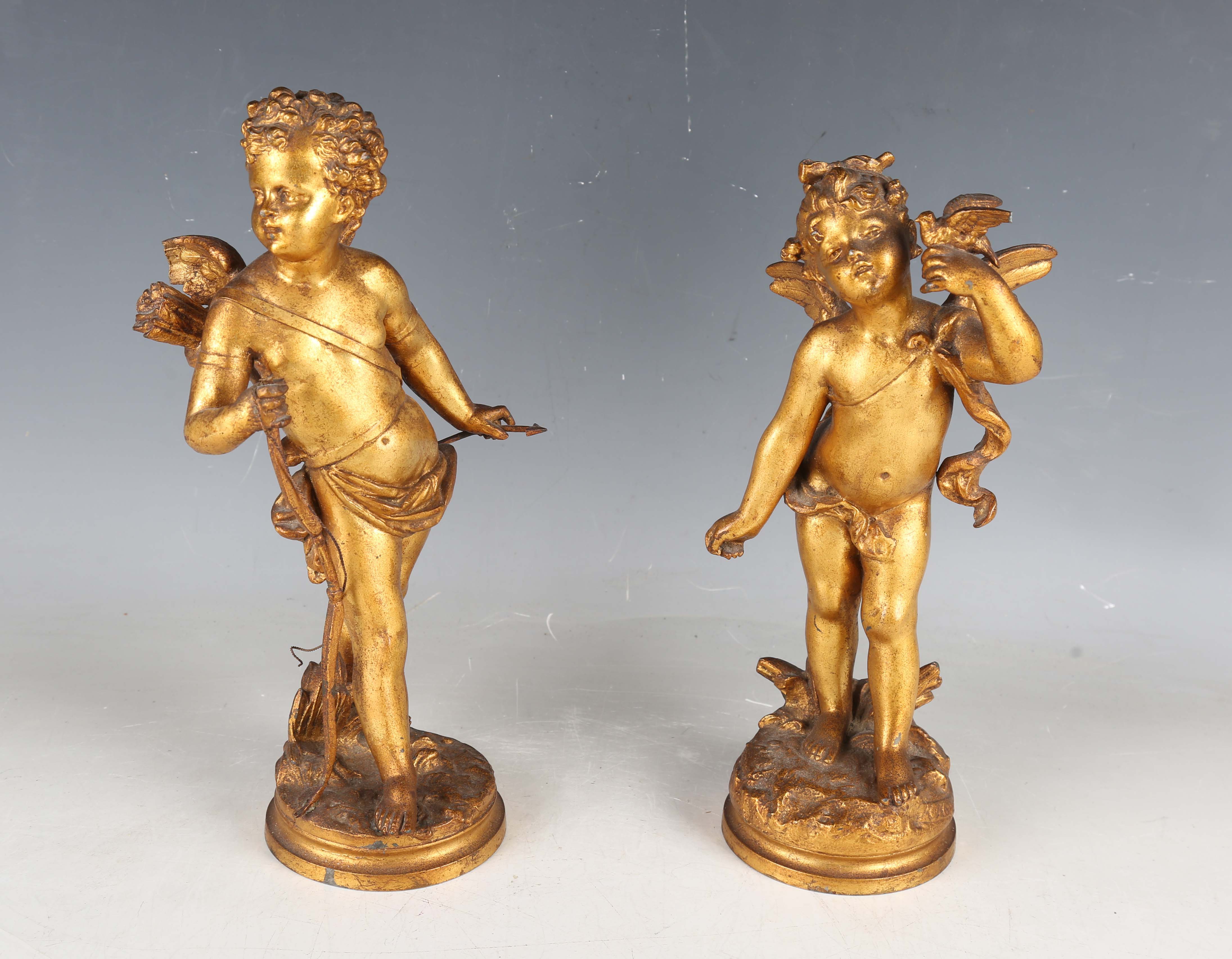 A pair of late 19th century gilt spelter figures of standing cherubs, height 30cm.