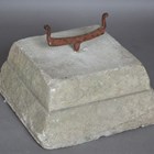 A late 18th century wrought iron bootscraper, mounted to a stepped square stone base, width 32cm.
