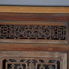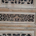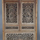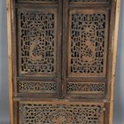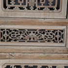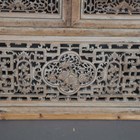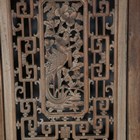 A large Chinese carved and pierced softwood wall panel, worked with birds and fish within borders of foliate strapwork, 136cm x 85cm, mounted within a later pine frame.