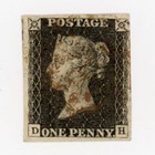 Great Britain 1d black stamp plate 6 (DH), four margins, red brown Maltese Cross.