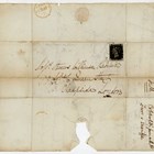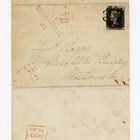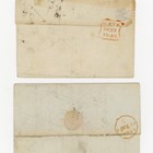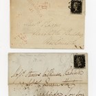 Great Britain 1d black stamp plate 9 on December 1840 outer letter sheet just four margins, and February 1841 outer letter sheet 1d black plate 10 (three margins), black Maltese Cross.