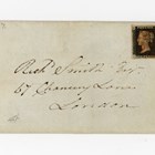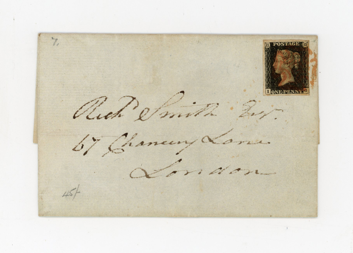 Great Britain 20 October 1840 outer letter sheet from Crawley to London with 1d black (IG) plate 7 cancelled red Maltese Cross, three clear margins, cut close at right.