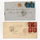 Great Britain postal history group 1853 1d (damaged) on cover, 2d blue, 1 shilling green embossed to France, six covers to 'Duke de Polignac' in Paris, 1876 and 1877 cover to Mexico (12).