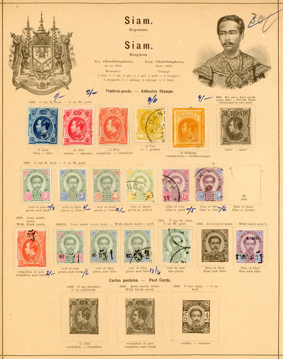 Thailand stamps and postal history on album leaves, on stock cards from 1883 first issues mint and used, 1908 statue 20 T. used, later issues up to 1950s, quantity of postal stationery cards used, plus a few covers.