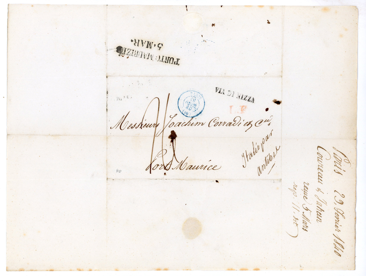 Correspondence of postal covers 1780-1850s to Port Maurice (Porto Maurizio) in Italy from France and Italy with pre stamp markings, straight line town cancels, 'Via Di Nizza', 'Nizza Di Mare', some addressed to Monaco and Malta (100s).