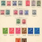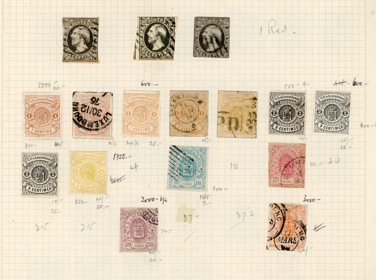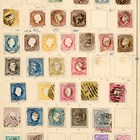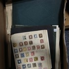 World stamps in albums, on album leaves, old auction folders with Great Britain, British Colonies, Europe, Luxembourg and Switzerland (2 flat boxes).