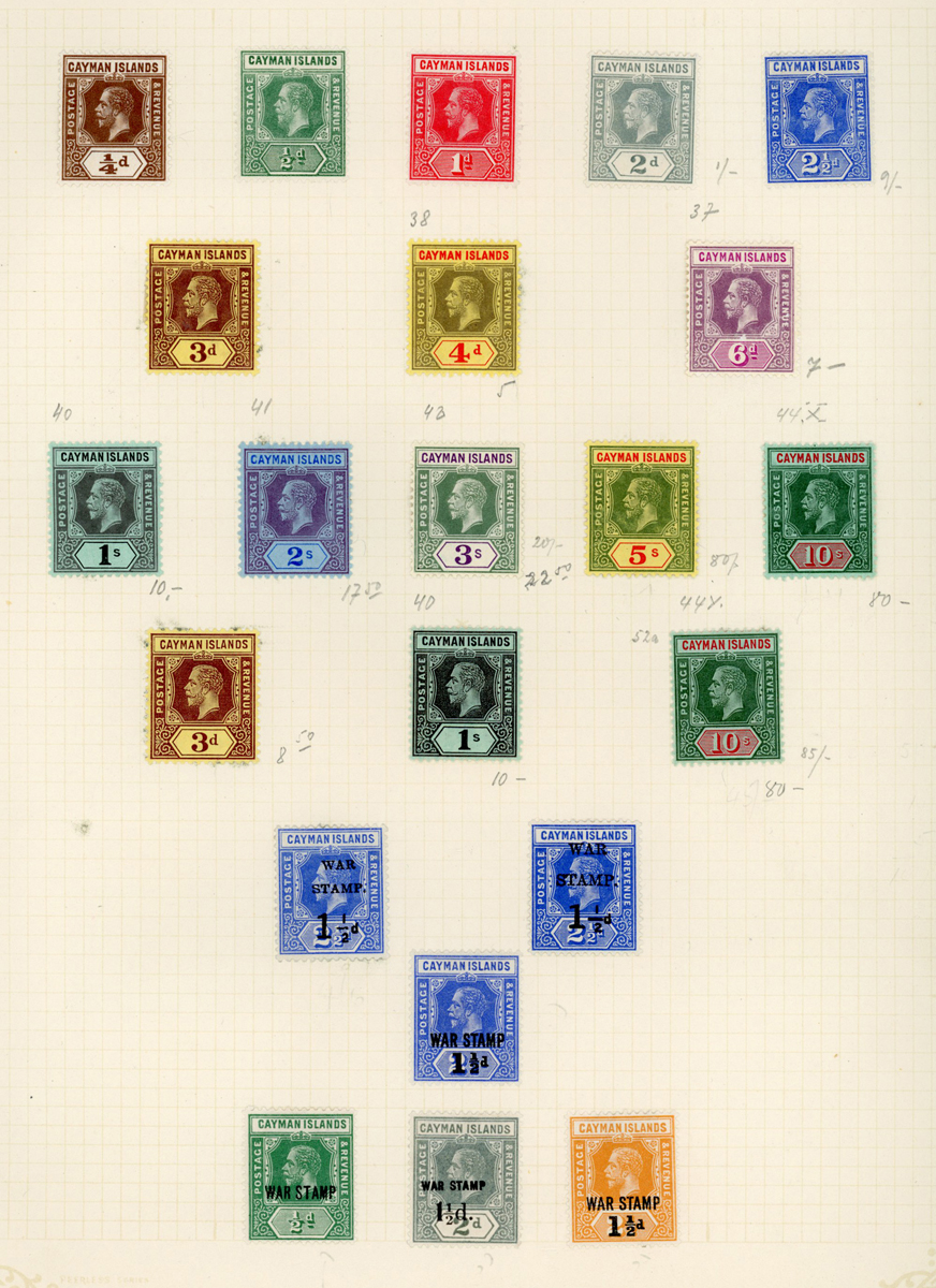 British West Indies stamps mint and used in old auction folders with Bahamas, Barbados, Cayman Islands 1912 to 1920 to 10 shillings mint (2), Grenada 1895 ½d to 1 shilling specimen, 1902 ½d to 10 shillings, specimen, 1902 10 shillings mint, 1913 to 10 shillings (2) mint, 1 shilling inverted watermark, St Kitts and St Lucia (some damp affected).