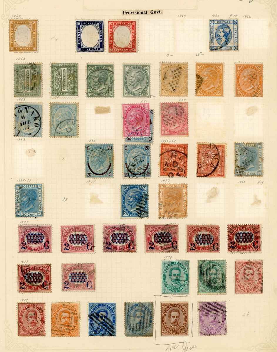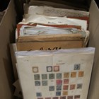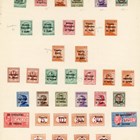 World stamps in old auction folders on leaves with Austria, Belgium, France and Colonies, Germany, British Commonwealth, some stampless covers and Yugoslavia.
