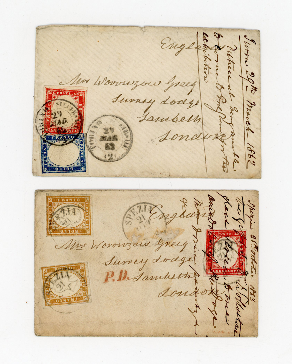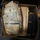 Italy stamps and covers, all pre-1960s with Italian States, Sardinia covers, 1930s sets mint and used, 1933 Balbo mint blocks, 19 Manzoni 5 lire unused, 1930 Air 7L70 unused, 1945 100 litre carmine mint, Italian Colonies in two albums, album leaves and old auction folders (box and shoebox).