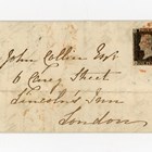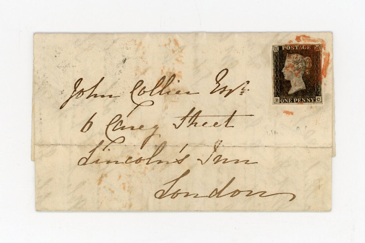 Great Britain 1d black, four margins on January 1841 cover from Norwich to London tied by red Maltese Cross.