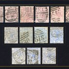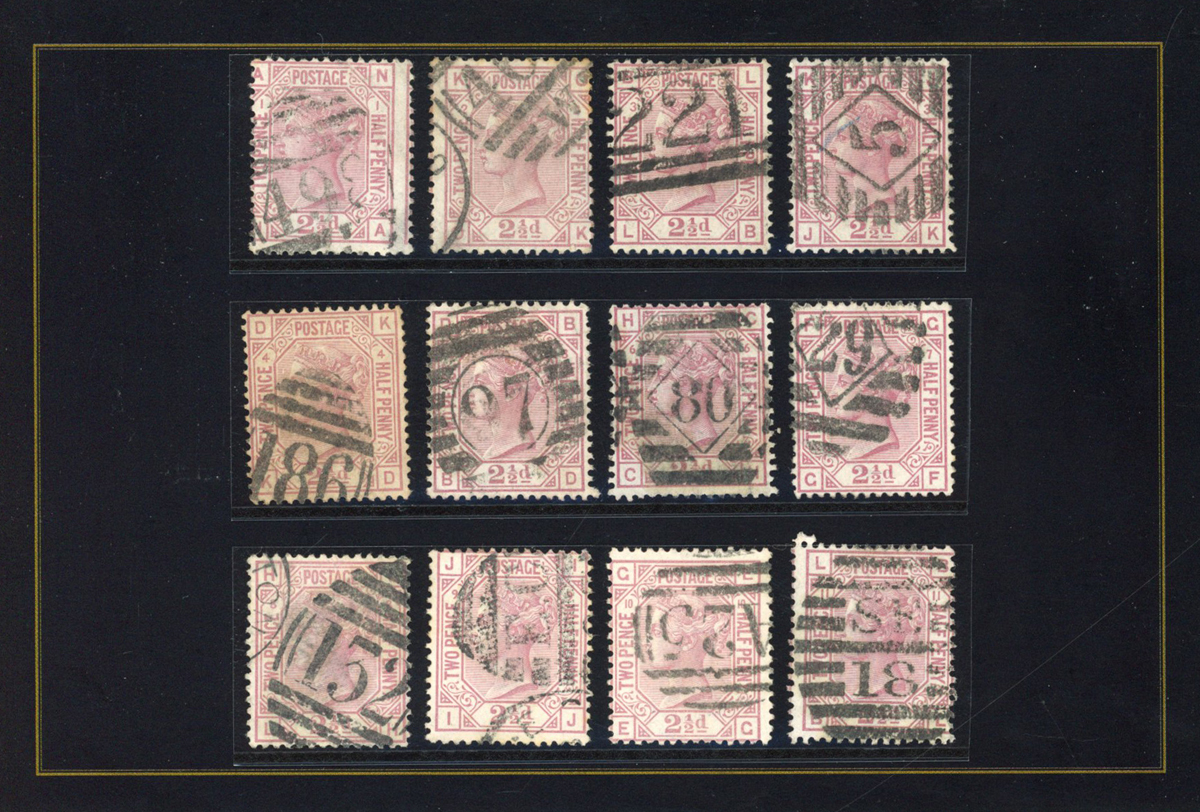 Great Britain 2½d stamps 1875 2½d rosy mauve and 1888 2½d blue with plate numbers (25 stamps) in case.