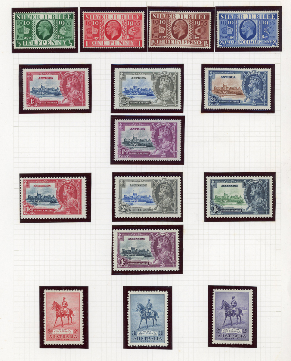 Omnibus issues in an album with 1935 Silver Jubilee (no Egypt), 1937 Coronation, 1948 Silver Wedding mounted mint stamps, and 1953 Coronation unmounted mint.