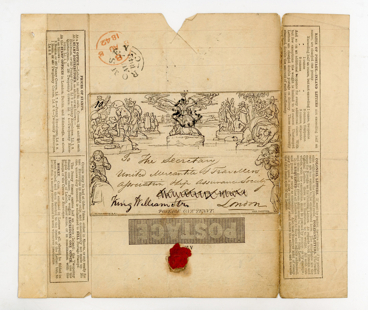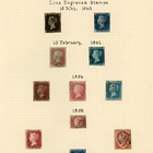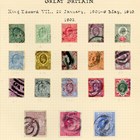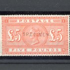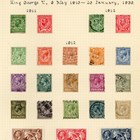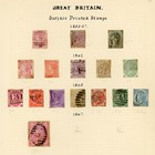 Great Britain stamp collection on album leaves from 1840 1d black and 2d blue used, 1d Mulready letters sheet used August 1842 Romsey to London 1883 2 shillings 6d, 5 shillings, 10 shillings specimen, £5 orange specimen (gum creases), Edward VII ½d to 10 shillings used, and 1934 reengraved Seahorses mint.