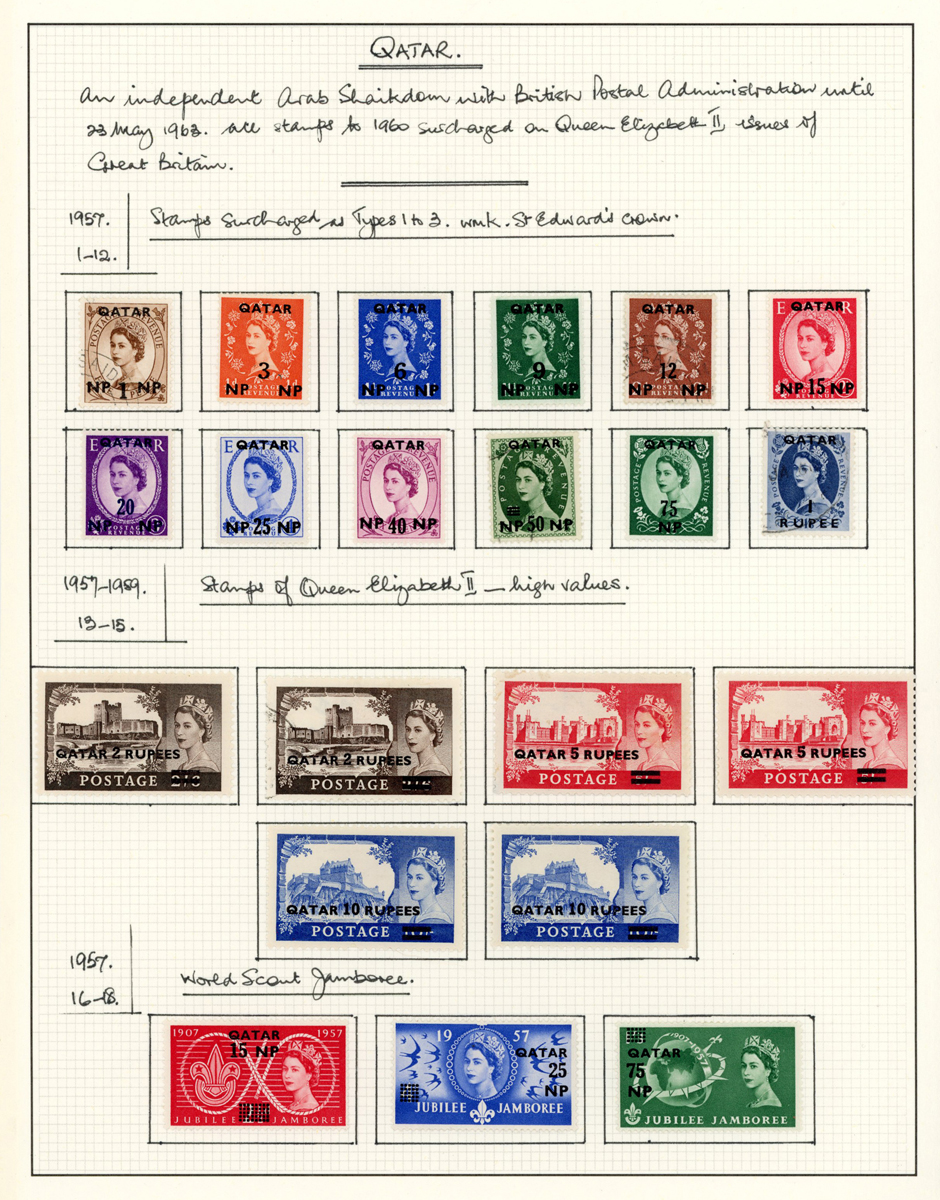 British Commonwealth stamps in three stock books, on leaves, auction folders with Bahrain, Bahamas, Aden, Kuwait, Qatar, Orange Free State, Nigeria, Jamaica, Zanzibar and St Helena.