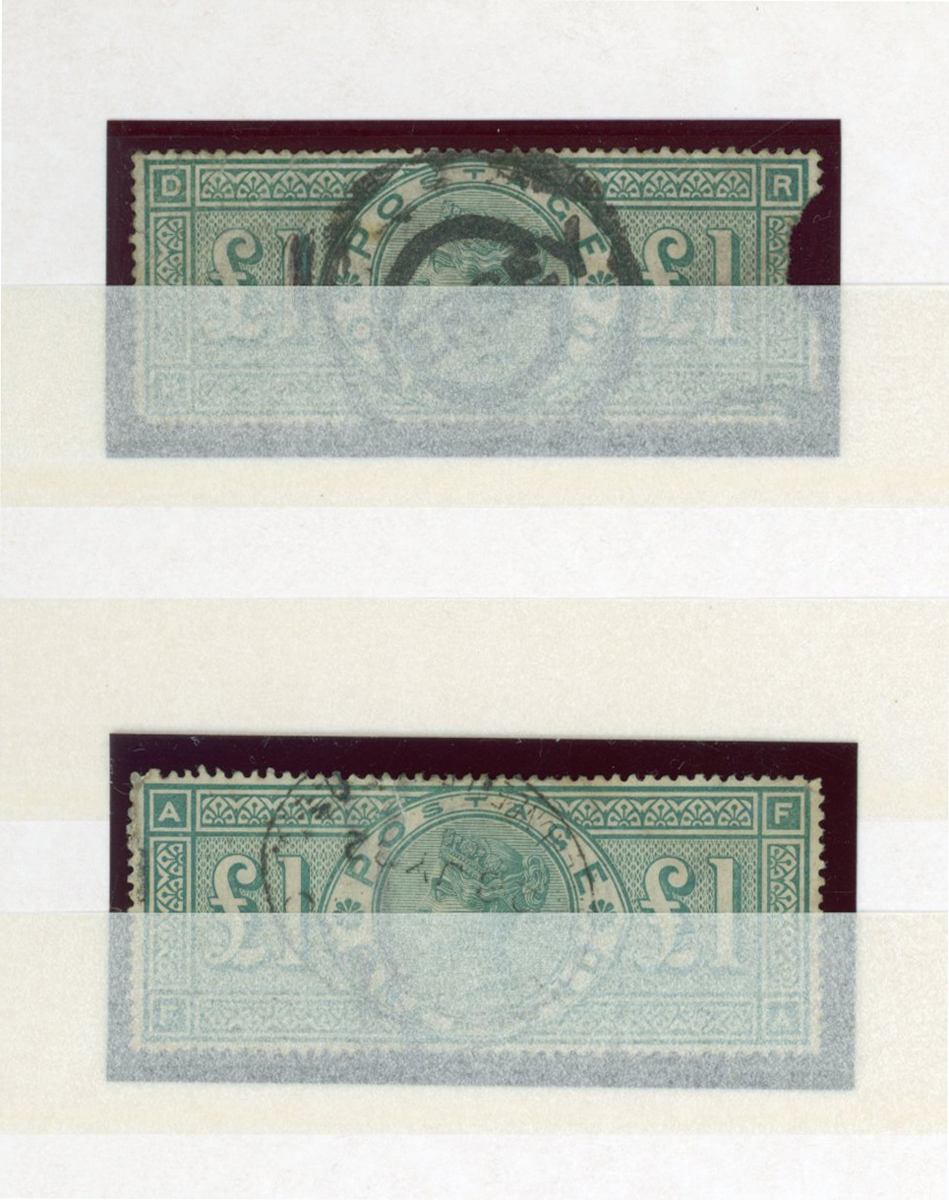 Great Britain stamps in eight stock books from 1841 1d red browns, postmarks, 1d red plates - 224 , surface printed, 1883 10 shillings (3) used, 1884 £1 brown specimen (faults), 1891 £1 green (2) used, mixed condition plus officials and postage dues.